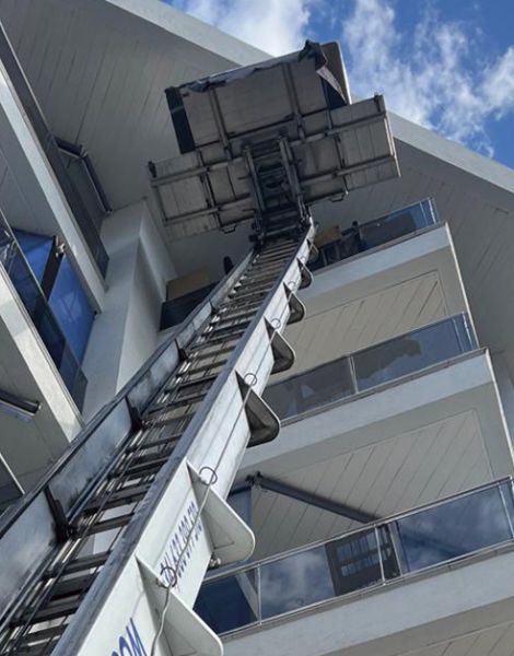 Lifting furniture with a crane up the façade